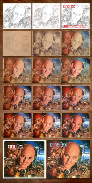 The March> 2010 edition of the magazine carried an in-depth editorial on Tippett along with a feature on Tippett Studio's 25 Anniversary and even though this highly regarded magazine has never featured an illustration on its cover before, Don kindly granted me an enormous amount of freedom with the design. Raats step-by-step work in progress HERE Posted by dschnee at March 15, 2010 8:44 PM